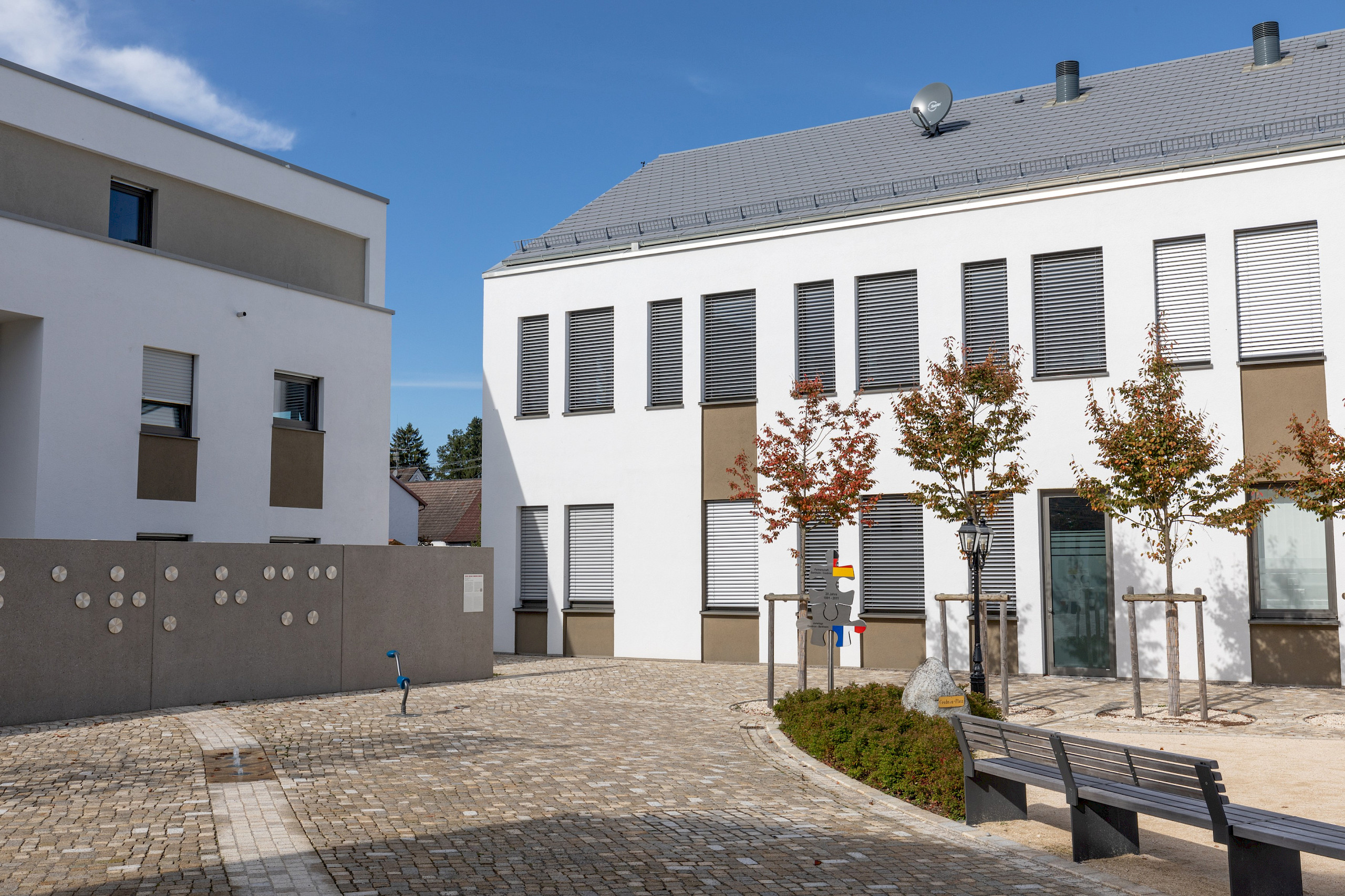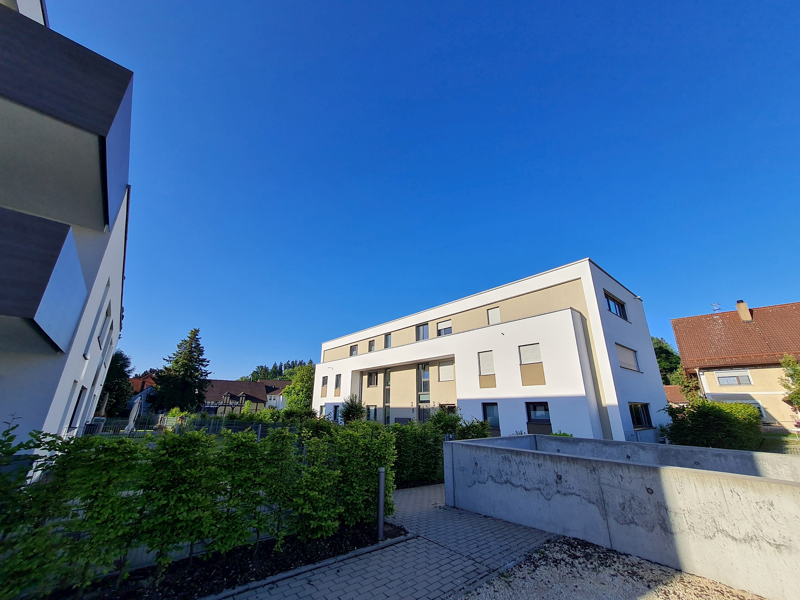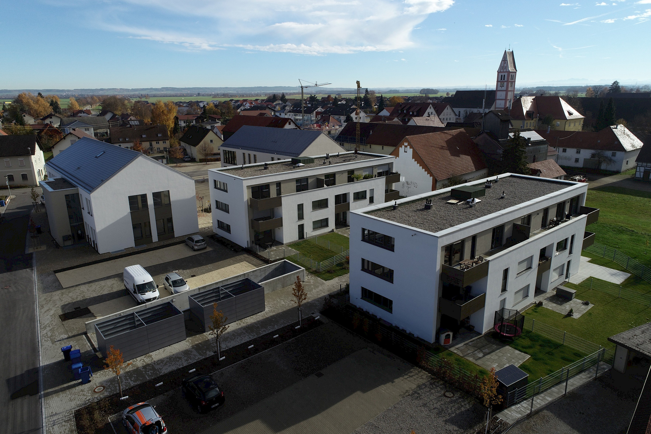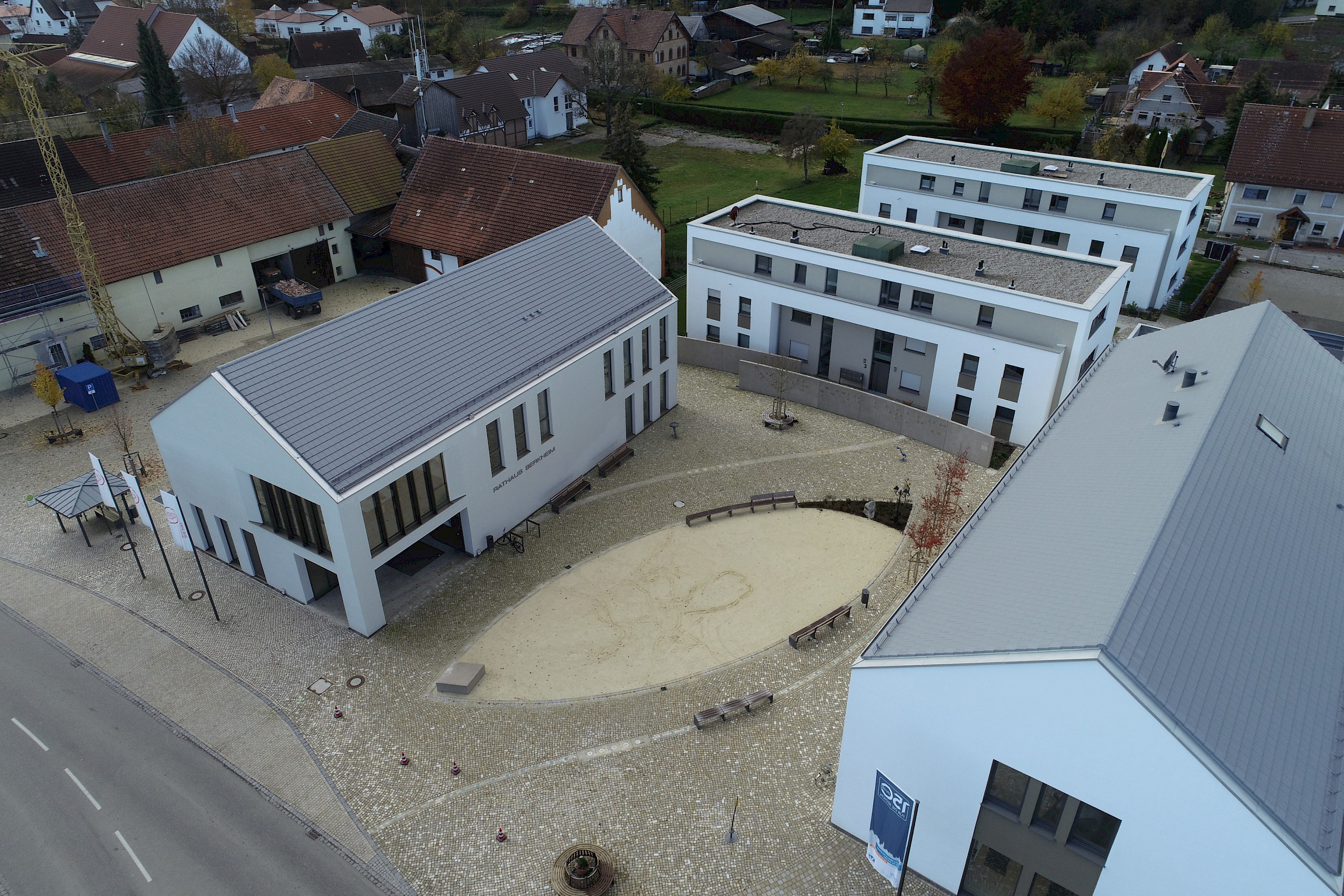 Im Zentrum von Berkheim entstanden 2017 zwei exklusive Mehrfamilienhäuser. Gemeinsam mit dem neuen Rathaus und einem weiteren Geschäftshaus bildet die moderne Wohnanlage die neue Ortsmitte Berkheims.