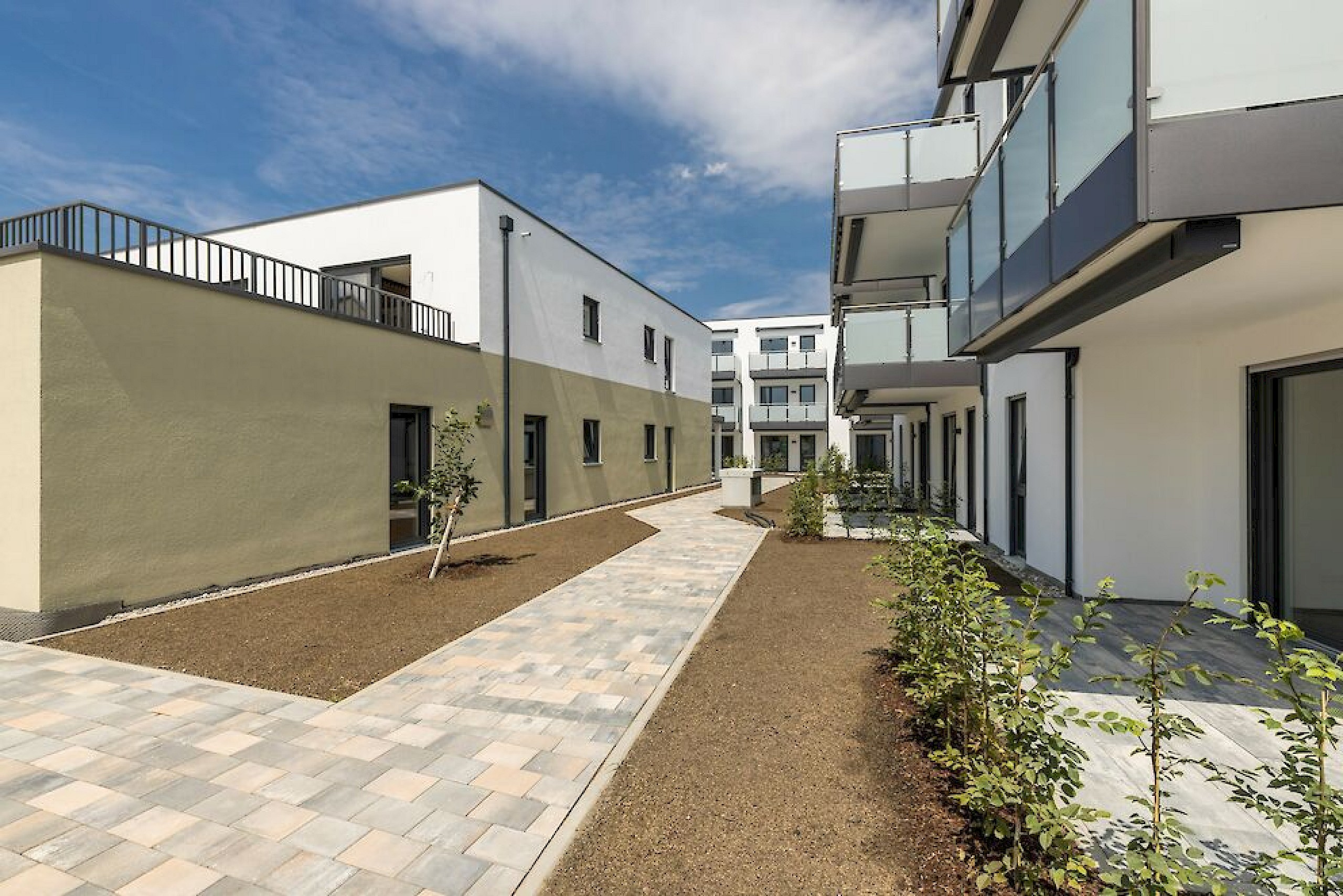 Der gesamte Außenbereich soll Platz für Begegnung und Aufenthalt bieten und ist komplett frei von Kraftfahrzeugverkehr.